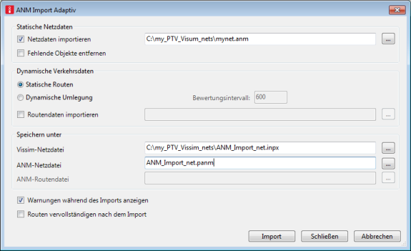 Sie importieren ANM-Daten adaptiv, wenn das Vissim-Netz ursprünglich durch einen ANM-Import erzeugt wurde.