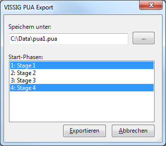 6. Wählen Sie im Fenster VISSIG PUA Export die Start-Phasen aus.