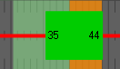 Gültiger Phasenübergang: Der Hintergrund wird grün dargestellt. Nach dem Loslassen der Maustaste innerhalb der Zeitachsenbeschriftung wird automatisch in die Bearbeitungsansicht des Phasenübergangs gewechselt und dieser Phasenübergang gespeichert. Wenn die Von-Phase und die Nach-Phase des Phasenübergangs noch nicht vorhanden sind, werden diese zusätzlich zum extrahierten Phasenübergang angelegt. Von-Phase und die Nach-Phase können Sie bearbeiten (Phasenübergänge bearbeiten). |