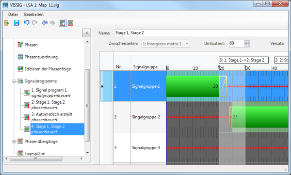 Sie können die Lage der Phasen innerhalb des Signalprogramms ändern.