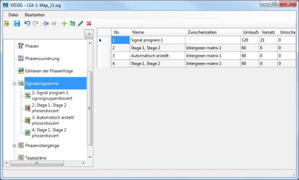 - signalgruppenbasierte Signalprogramme. Diese können in der Übersichtstabelle angelegt werden.