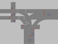 Drahtgitterdarstellung ausgeschaltet: Dreiarmiger Knotenpunkt mit zwei Fußgängerüberwegen |