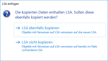Wenn Netzobjekte aus der Zwischenablage eingefügt werden können, die auf eine LSA verweisen, öffnet sich ein Fenster.