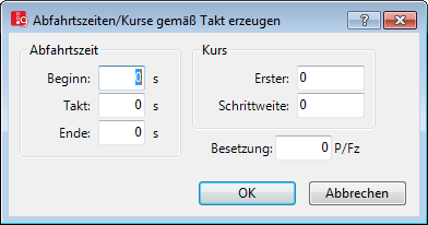 Das Fenster Abfahrtszeiten/Kurse gemäß Takt erzeugen öffnet sich.