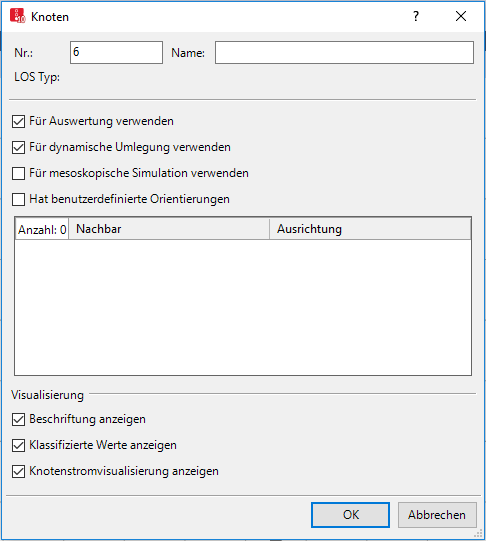 Wenn ein Knoten bearbeitet wird oder ein neuer Knoten eingefügt wird, definiert Vissim für alle Knoten den LOSTyp auf Basis des Knotentyps beim nächsten Start der Simulation. |