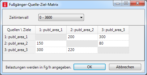 Das Fenster Fußgänger-Quelle-Ziel-Matrix öffnet sich.
