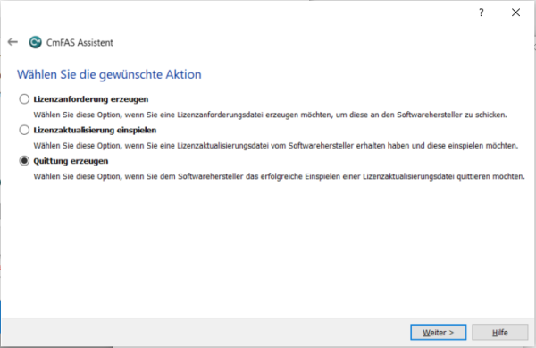 Im nächsten Schritt müssen Sie auf dem Lizenzserver noch eine Quittungsdatei erstellen, um den Aktivierungsprozess abzuschließen: