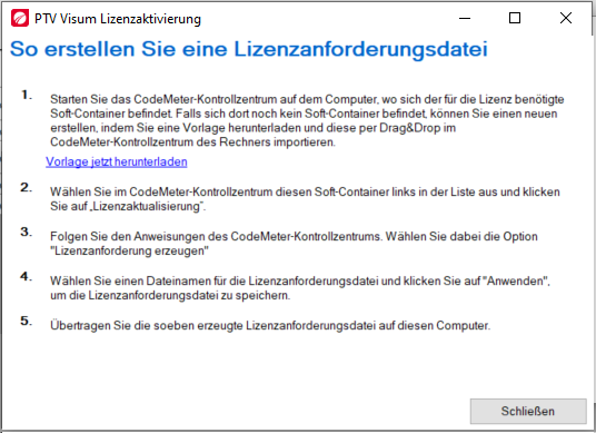 2. Klicken Sie auf den Hyperlink Vorlage jetzt herunterladen und speichern Sie die Datei auf dem Lizenzserver.