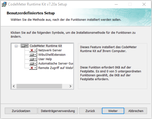 1. Installieren Sie die Datei Setup_LicenseManagerServer <Versionsnummer>x64.exe und stellen Sie dabei sicher, dass auch das CodeMeter Runtime Kit installiert wird.