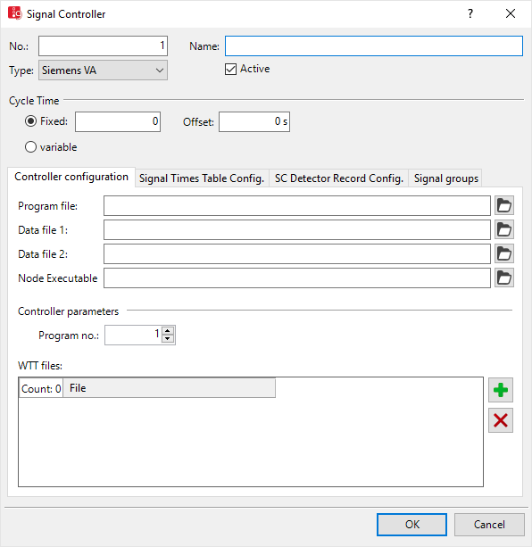 WTTFiles: Value type tables: These contain the data types of the control logic which are to be shown in the Signal Control Detector Record or in the Signal Times Table window, as well as the display type. If the control consists of several TL modules, you must specify the associated *.wtt file for each module.