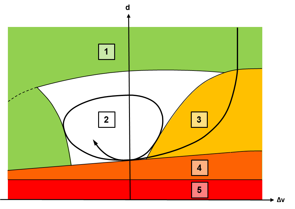 | 1: Bereich "freies Verhalten" | 4: Bremsbereich |