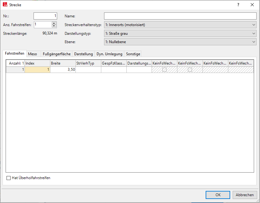 - Fahrstreifen: Die Attribute sind oben beschrieben.