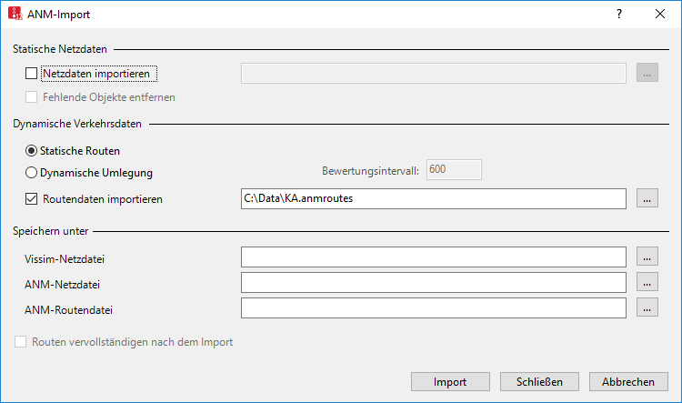 5. Wählen Sie die Datei *.anmroutes aus, die Sie aus Visum exportiert haben.