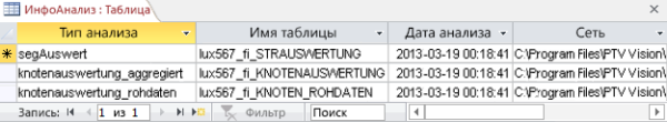 Файл базы данных будет сохранен. Для данных анализа в базе данных будет создана таблица ИнфоАнализ. В таблице содержатся данные анализа с определенным пользователем именем таблицы в столбце Имя таблицы. Если вы выполняете несколько циклов имитации, то данные из циклов имитации сохраняются только в таблице базы данных. В списке атрибутов столбцы с одним и тем же заголовком, добавленные несколько раз, сокращаются до однократного упоминания.