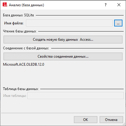 - Access версии 2007 или выше: должен быть установлен драйвер ACE 12 (Microsoft Access Database Engine 2010 Redistributable) для файлов базы данных с типом данных *.accdb.