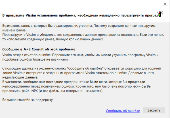 При возникновении неожиданного состояния программы откроется сообщение об ошибке: