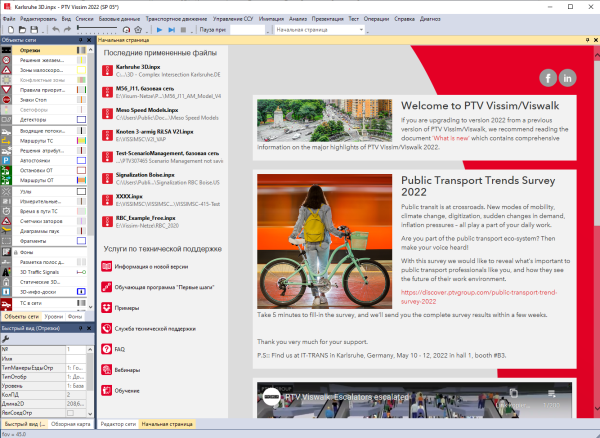 После запуска программы на экране открывается начальная страница, а затем — интерфейс пользователя Vissim со вкладкой Начальная страница.