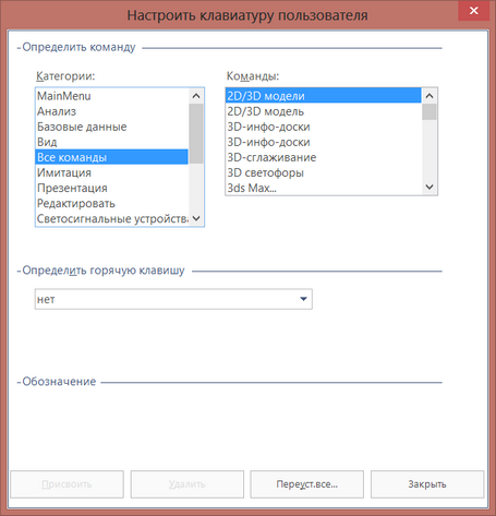 Если комбинация клавиш присвоена другой команде, то такая комбинация снимается.