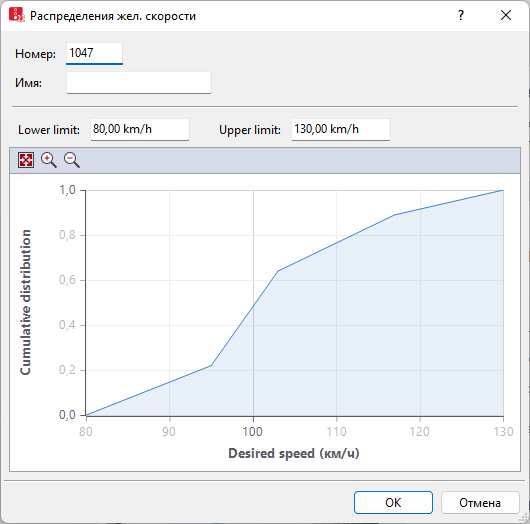 Примечание: Типичные распределения нужной скорости предварительно установлены в Vissim по умолчанию. |