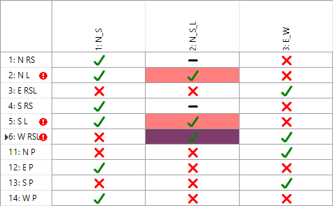 - В виде обработки неконсистентного фазового перехода схематичное изображение конфликтной фазы представлено в красном цвете, то же самое касается отклоняющихся состояний фазы в строках. При эксплицитном выборе фазы, выделенной красным цветом, запускается перерасчет фазового перехода, для того чтобы он снова стал консистентным с измененной фазой.