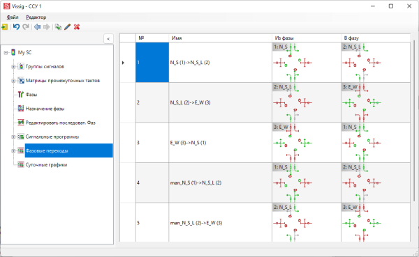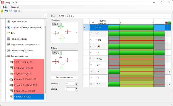 Примечание: Если при расчете фазового перехода состояние группы сигналов в исходной или конечной фазе нерелевантно, то для этой группы сигналов не производится смены сигналов. Внутри фазового перехода отображается такое же состояние всех систем регулирования, что и в релевантной фазе. Если состояние группы сигналов нерелевантно ни в исходной, ни в конечной фазе, то состояние всех систем регулирования в пределах фазового перехода также будет отображаться нерелевантным. |