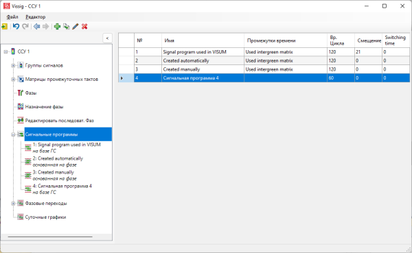 Можно автоматически создавать сигнальные программы с фиксированным временем цикла также после редактирования последовательности фаз (Обработка последовательности фаз).
