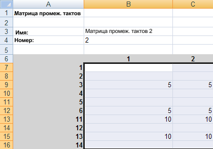 12. Перейдите в вид обработки новой матрицы промежуточных тактов.