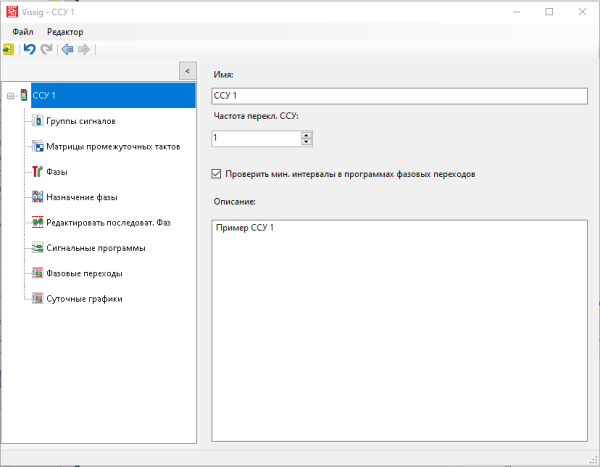 - Создание фазовых последовательностей и фазовых переходов, а также сигнальных программ на основе групп сигналов (также обозначаются как «на основе фаз») (Обработка последовательности фаз). С помощью дополнительного модуля Vissig также можно определить сигнальные программы, основанные на фазах.