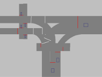 - Соединяющие отрезки между отрезками при моделировании движения на перекрестках, а также примыканий и разветвлений полос движения.