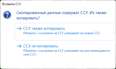 Если из буфера обмена можно вставить объекты сети, которые ссылаются на ССУ, то откроется окно.