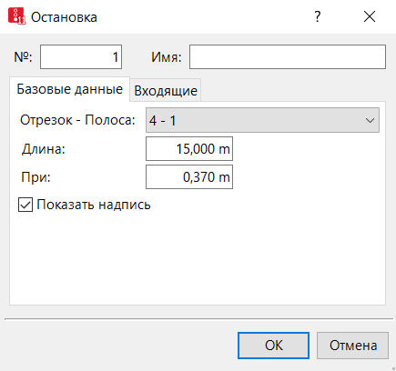 Окно Остановка откроется автоматически, если вставить объект сети и выбрать автоматическое открытие диалогового окна редактирования после создания объекта (Определить функцию правой кнопки мыши и действие после создания объекта). По умолчанию открывается только список остановок.