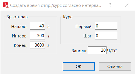 Откроется окно Создать время отпр./курс согласно интервала.