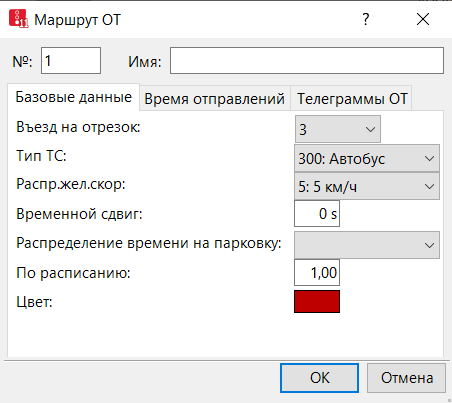 | ОТ-телеграмма маршрута | Отправить телеграммы ОТ (ТелеОТОтпр): . Если эта опция выбрана, транспортные средства этого маршрута ОТ фиксируются пунктами регистрации. |