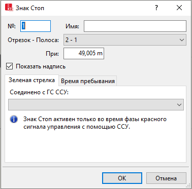 Окно Знак «Стоп» откроется, если вставлен знак «Стоп» и выбрано автоматическое открытие диалогового окна редактирования после создания объекта (Определить функцию правой кнопки мыши и действие после создания объекта).