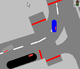 Транспортные средства без нужного направления и без маршрута ТС всегда едут на следующий соединяющий отрезок с критерием Все. Если в конце отрезка не существует соединяющего отрезка с таким критерием, то эти транспортные средства удаляются из сети Vissim. Желаемое направление отображается в следующей очередности: 1. Текущая смена полосы. 2. Нужная смена полосы. 3. Нужное направление текущего соединяющего отрезка. 4. Нужное направление следующего соединяющего отрезка маршрута с нужным направлением Направо или Налево, если транспортное средство располагается в пределах значения, указанного в атрибуте Расстояние при смене полос движения (поле ввода Перестроение). Если транспортное средство намеревается попасть на парковочное место и этот соединяющий отрезок ведет на парковочное место, транспортное средство подает мигающий сигнал за 10,0 м до начала соединяющего отрезка. 5. Направление мигающего сигнала, заданное внешней моделью водителя в файле DLL Driver Model (Активирование внешней модели водителя с помощью файла Driver Model DLL). |