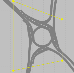Чтобы сократить комплексность модели сети и тем самым время расчета и затраты памяти, можно идентифицировать части сети как узлы. Это по крайней мере те места, в которых пути объединяются или значительно разветвляются. Как правило, это будут фрагменты сети, которые представляют собой реальный перекресток. Не объединяйте большие фрагменты сети с несколькими перекрестками в один узел.
