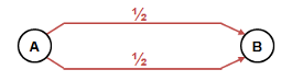 Для каждой корреспонденции Источник-Цель общий спрос на транспорт распределяется на все возможные пути. При этом распределение ориентируется на обобщенные затраты путей, которые рассчитываются из измеренных размеров и установленных коэффициентов взвешивания. Путь состоит из комбинации ребер. Два пути являются различными, если их последовательность ребер не равна. Это действительно также, если пути отличаются друг от друга только одним небольшим участком. В таком случае при распределении объема транспортного движения оба пути имели бы приблизительно идентичный вес. Это в целом привело бы к искаженному распределению. Эта проблема появляется при любом распределении и обозначается с помощью парадокса Красный автобус и синий автобус. Это показывают следующие рисунки: