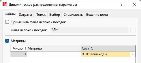 1. Выберите в меню Транспортное движение > Динамическое распределение > Матрицы.