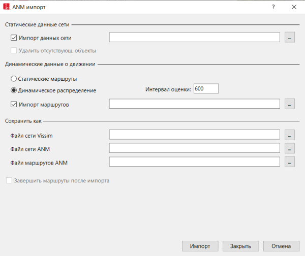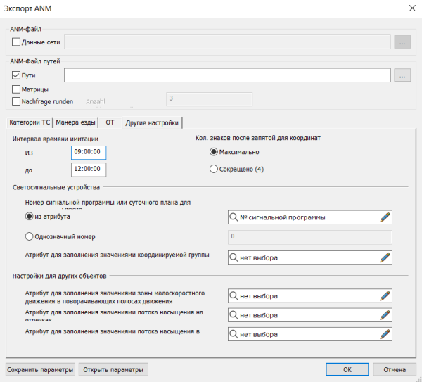 Примечание: Экспортируйте исключительно пути *.anmroutes. Не экспортируйте данные сети *.anm или матрицы. |