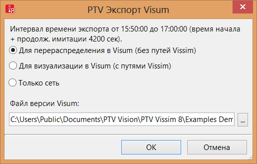 2. Экспортируйте данные сети и матрицу для распределения в Visum (Экспортировать данные).