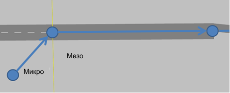 Следующий рисунок показывает схематичное отображение области перехода от Микро к Мезо: