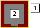 Лифт — объект сети, который в режиме 2D определяется и отображается в виде прямоугольного объекта сети (1) (Определить лифт). Прямоугольник включает лифтовую шахту и кабину (2). Кабина двигается в шахта. Между внешней стороной шахты и кабиной указано расстояние 30 см (коричневая область). Пол лифта имеет толщину 10 см. Отображение этой области настраивается с помощью атрибута Тип отображения шахты для лифта.