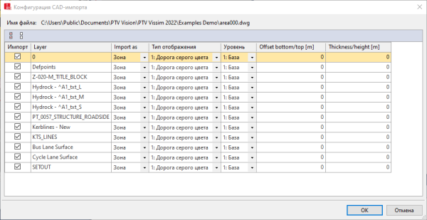 Выберите Уровень из Vissim для уровня CAD из файла *.dwg. Должна быть определена плоскость в Vissim (Определение уровней). |