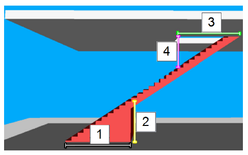 - Проем в потолке в верхней части лестницы выводится из атрибута Длина (3) или Высота прохода в свету (4).