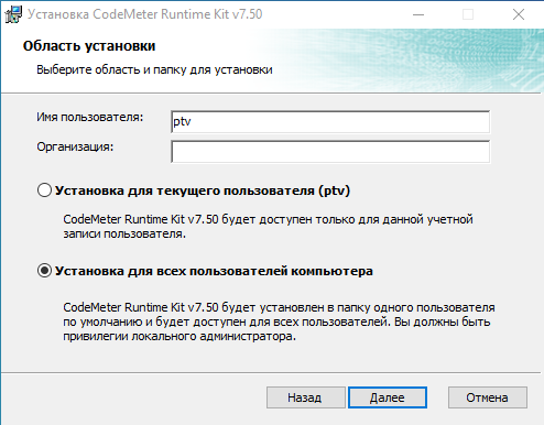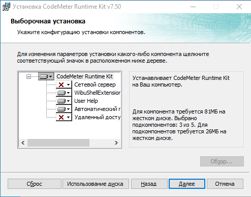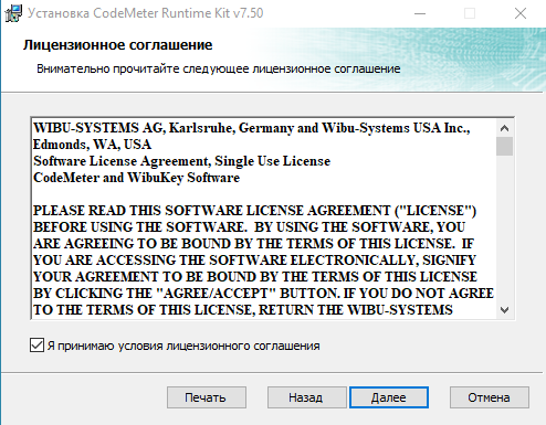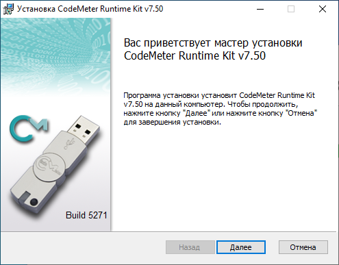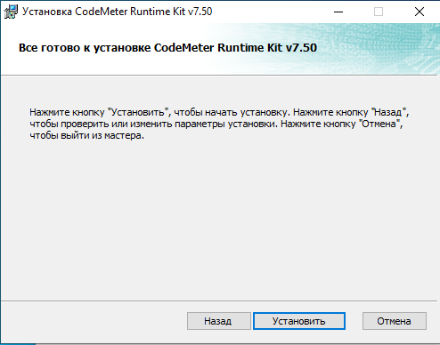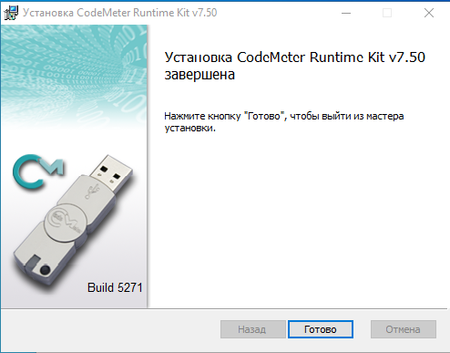 После установки License Manager откроется окно Установка CodeMeter Runtime Kit <номер версии>.