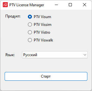Откроется окно PTV License Manager, при выборе соответствующего варианта с дополнением 2 или 3 в скобках.