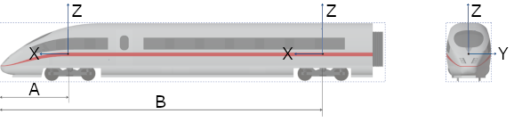 The cursors for the cubes of the axis positions are positioned in the center of the axes. The attributes of the cubes indicate the correct distance to the front edge. The front edge is defined by the dimensions in the Vissim Dimensions cube.