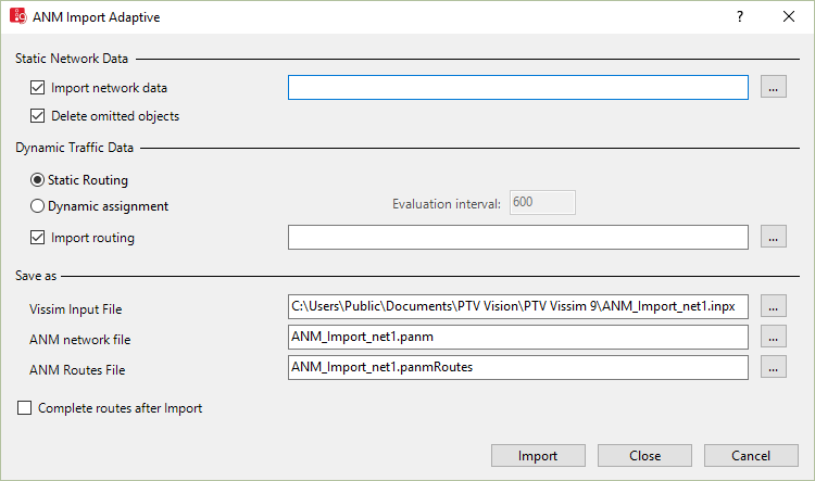 Complete routes after Import  Select this option to complete existing Vissim routes again that were disrupted during adaptive import.