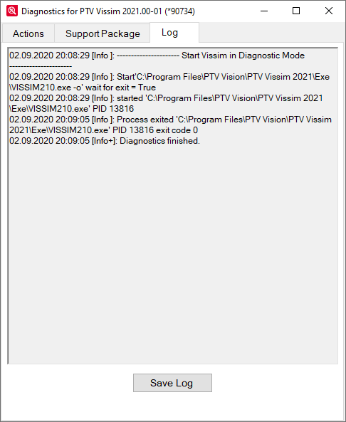 PTV Vision Supportにより、このタブでログファイルを作成するよう指示される場合があります。