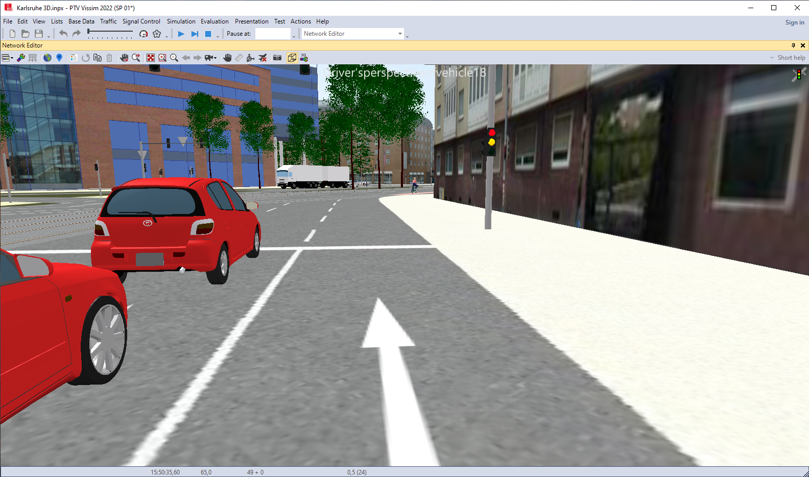 車両または歩行者を選択し、それぞれの視点からのビューを3Dモードで表示できます。開いているネットワークエディタ内で、別の車両または歩行者を選択し、異なる視点を同時に表示することもできます。